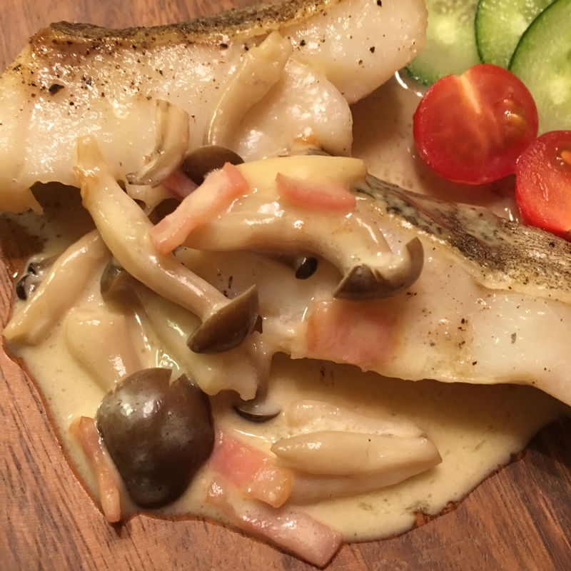 鱈のポワレ ポルチーニの香りたっぷりのクリームソースとともに Tomiz 富澤商店