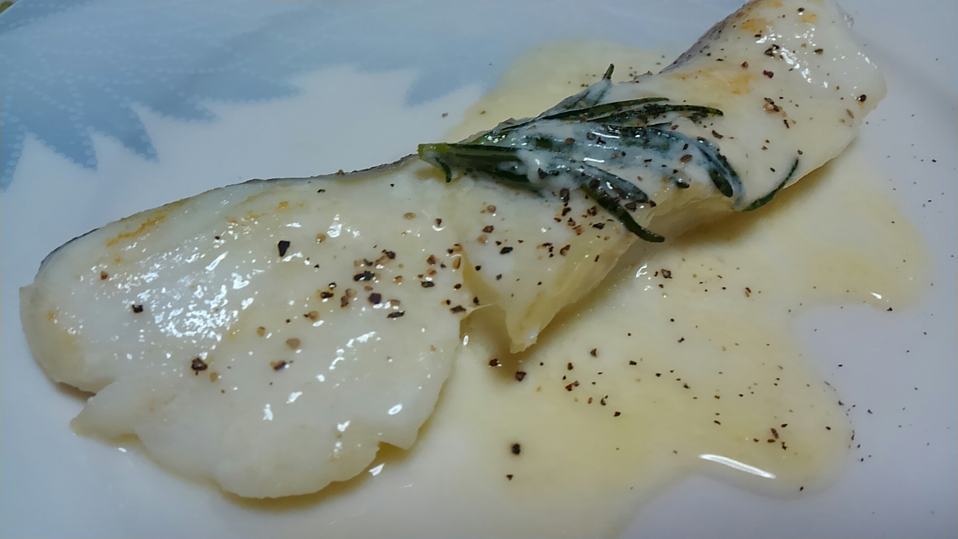 蒸した鱈に フレンチ定番の白ワインのソースをたっぷりかけて